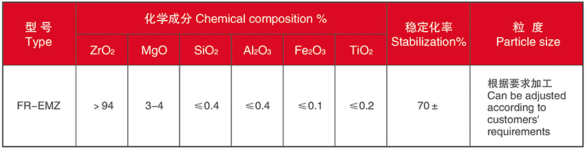 It is the unique products made up of high-purity MgO and ZrO2, Which is electric-smelted. The stabilization could be adjusted based on customers’ requirements, and it it usually around 70%.